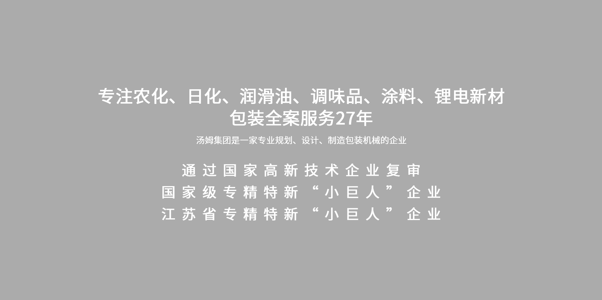 江蘇湯姆集團(tuán)在液態(tài)、粉體、固體、顆粒等包裝領(lǐng)域的專長保證了工藝設(shè)計與整線工程的完美結(jié)合。建立了農(nóng)化、石化、調(diào)味品、日化、涂料等不同包裝領(lǐng)域的工藝設(shè)計體系,根據(jù)不同的包裝形式及具體的工廠布局,均可提供專為您項目而量身定制的交鑰匙解決方案 。